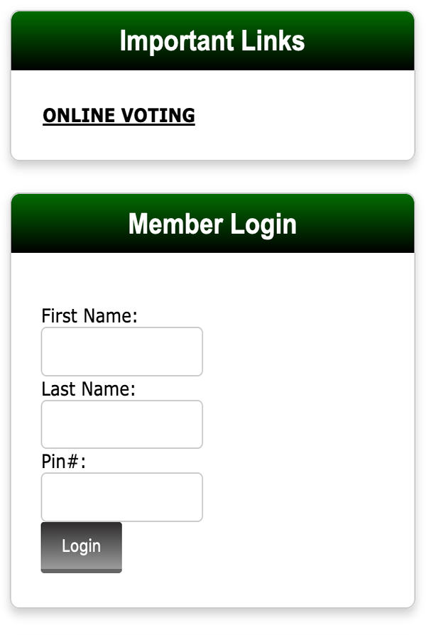 - Log in with your first name, last name and your PIN. Click "ONLINE VOTING" below "Important Links." See screenshot above.